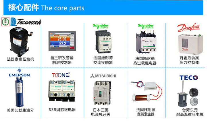 3、制冷及電控關(guān)鍵配件均采用國(guó)際知名品牌產(chǎn)品,使設(shè)備的整體質(zhì)量得到了提升和保證;